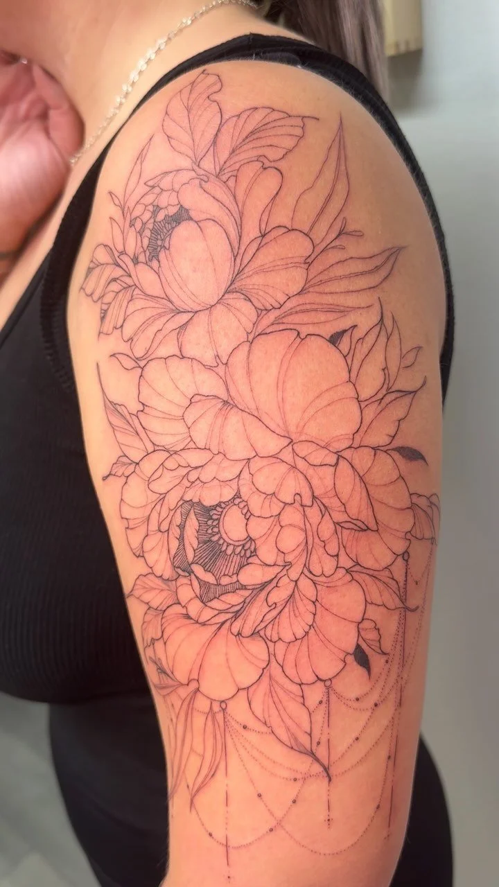 Fine-line tattoos are done using a small needle configuration to create thin, highly-detailed pieces. Although often referred to as “tiny” or “micro” tattoos, Fine Line Tattoos can be done on both a large and small scale.